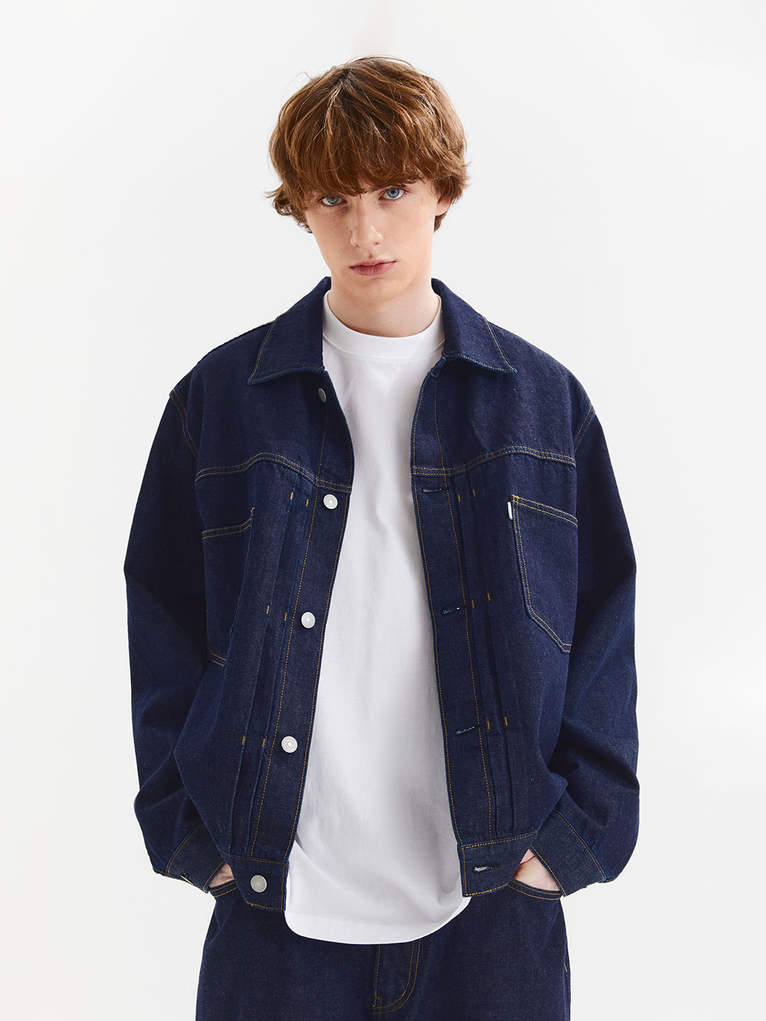 히든 안주머니에 밑단 비조 디테일까지, 트러커 재킷 정석에 충실한 디자인입니다.
